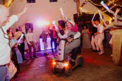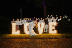 Nach einem spektakulären Eröffnungstanz ging die Feier direkt mit 100 % los. Zwischen Techno und Hardstyle wurde getanzt und gelacht. Auch mit Gehhilfe wie man sieht. Draußen habe ich Gefallen an dem "LOVE" Schriftzug gefunden, und es sind einige sehr kreative und schöne Bilder entstanden. Ein kurzes Spiegelselfie mit der Braut und dann ging es für mich ab nach Hause.