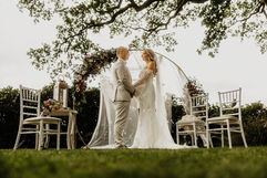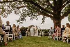 Als ich das erste Mal die Stuhlreihen im Garten sah, fiel mir direkt die mächtige alte Eiche auf, die mitten im Garten stand. Hätten die vorherigen Generationen, die den Baum vor über 450 Jahren gepflanzt haben, gedacht, dass unter diesem Baum nochmal geheiratet wird, hätten sie sich sicherlich gefreut! An diesem Tag habe ich eine Herzens-Ausnahme gemacht, was die Handynutzung betrifft. Normalerweise mag ich es gar nicht, wenn die Gäste während der Zeremonie auf ihr Handy schauen. Allerdings wurde die Trauung für Finns Trauzeugen aufgenommen, der kurz nach der Hochzeit frisch gebackener Papa war. Was eine tolle Geschichte! :)